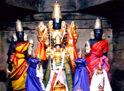 To these three is usually added another idol known as 'bali-beram', for the sake of distributing food daily to the attendant deities located in the enclosures.